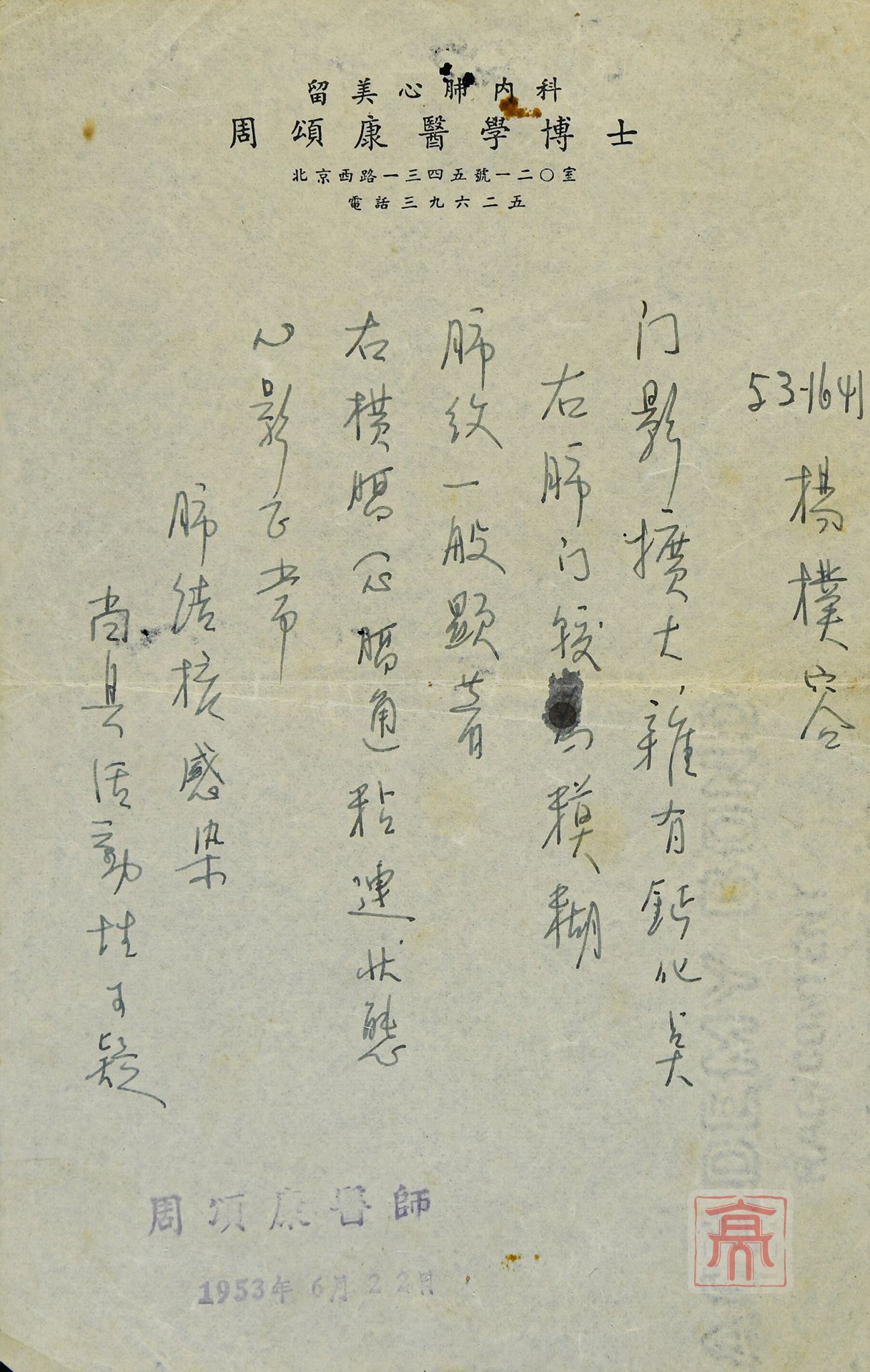 留美心肺内科周颂康医学博士开出的病历