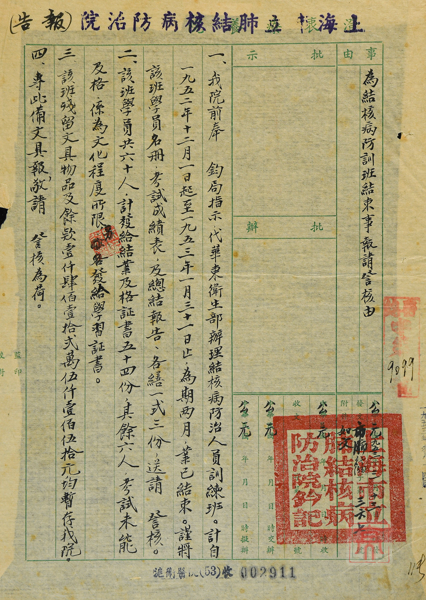 为结核病防训班结束事报请查核由-上海市立肺结核病防治院