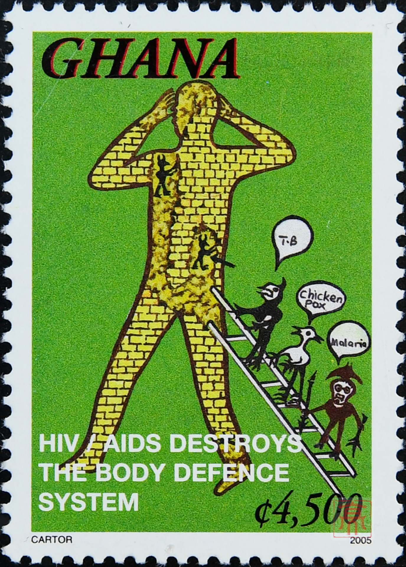 2005年加纳罹患艾滋毁坏免疫导致结核水痘疟疾纪念票