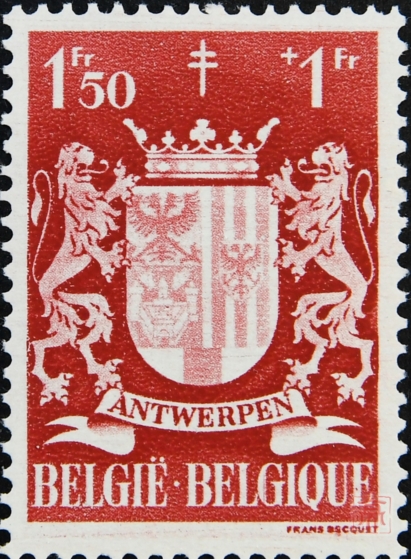 比利时安特卫普德法双语复十字附捐票