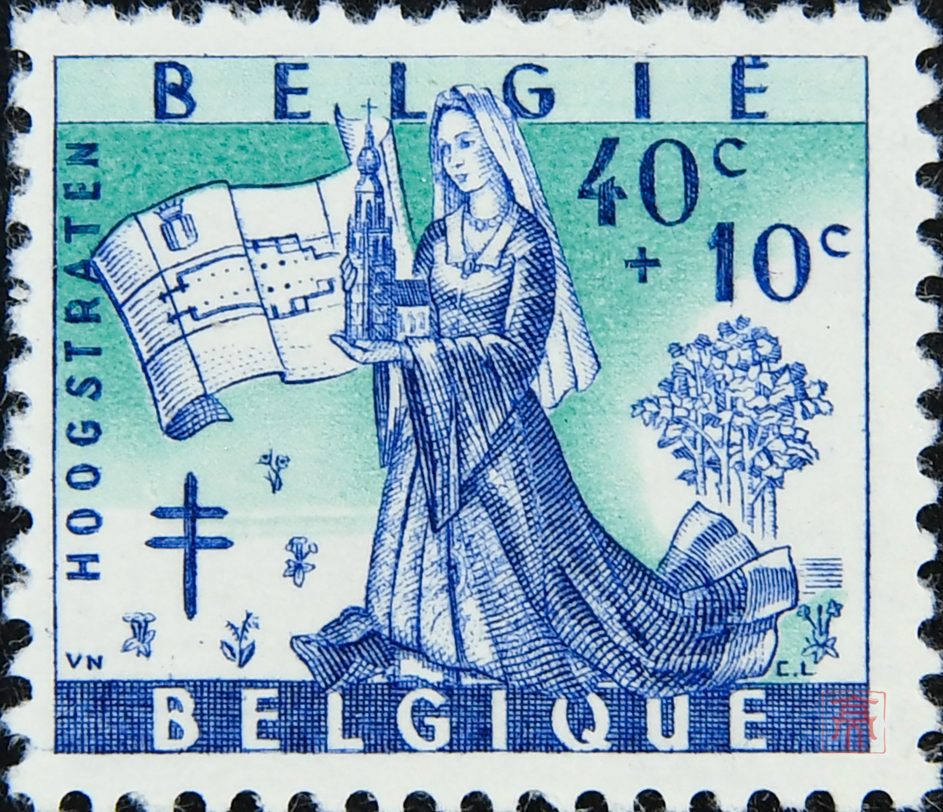 比利时胡格斯特拉滕荷法双语复十字附捐票