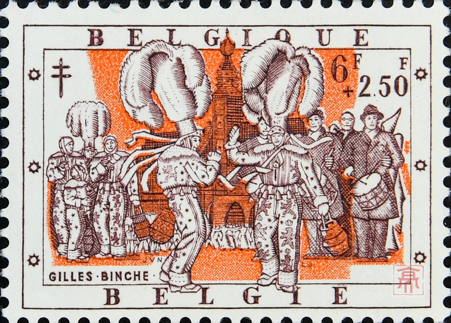 比利时纪念古乐作曲家吉列宾夸复十字防痨票
