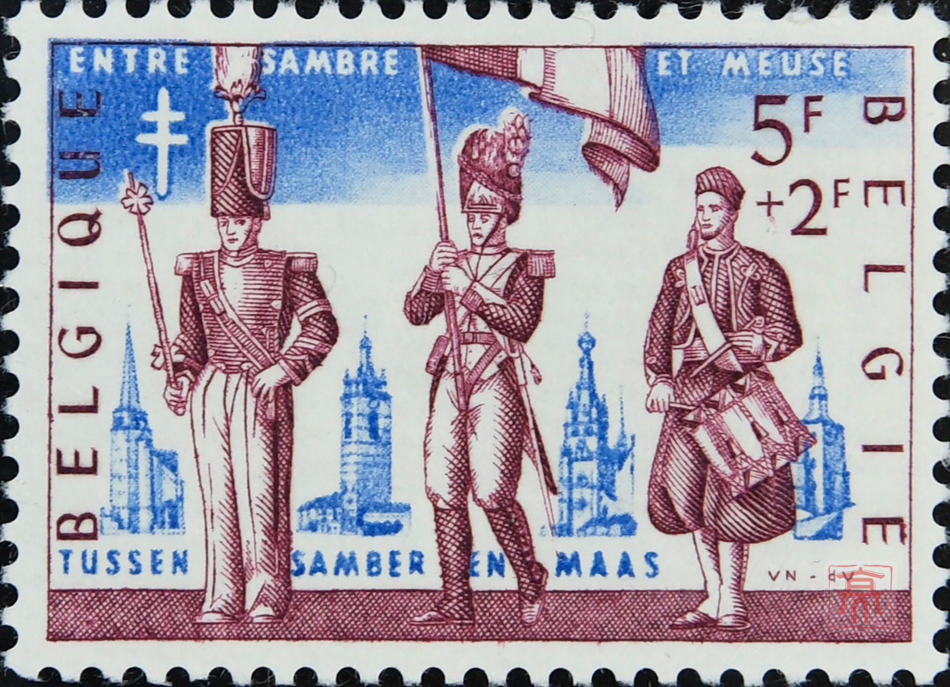 比利时夹在桑布尔河和墨兹河间的王国德法双语复十字防痨纪念票