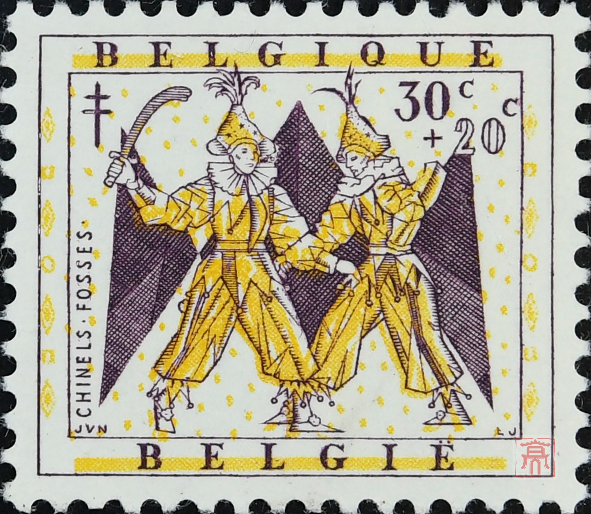 比利时两小丑复十字防痨纪念票