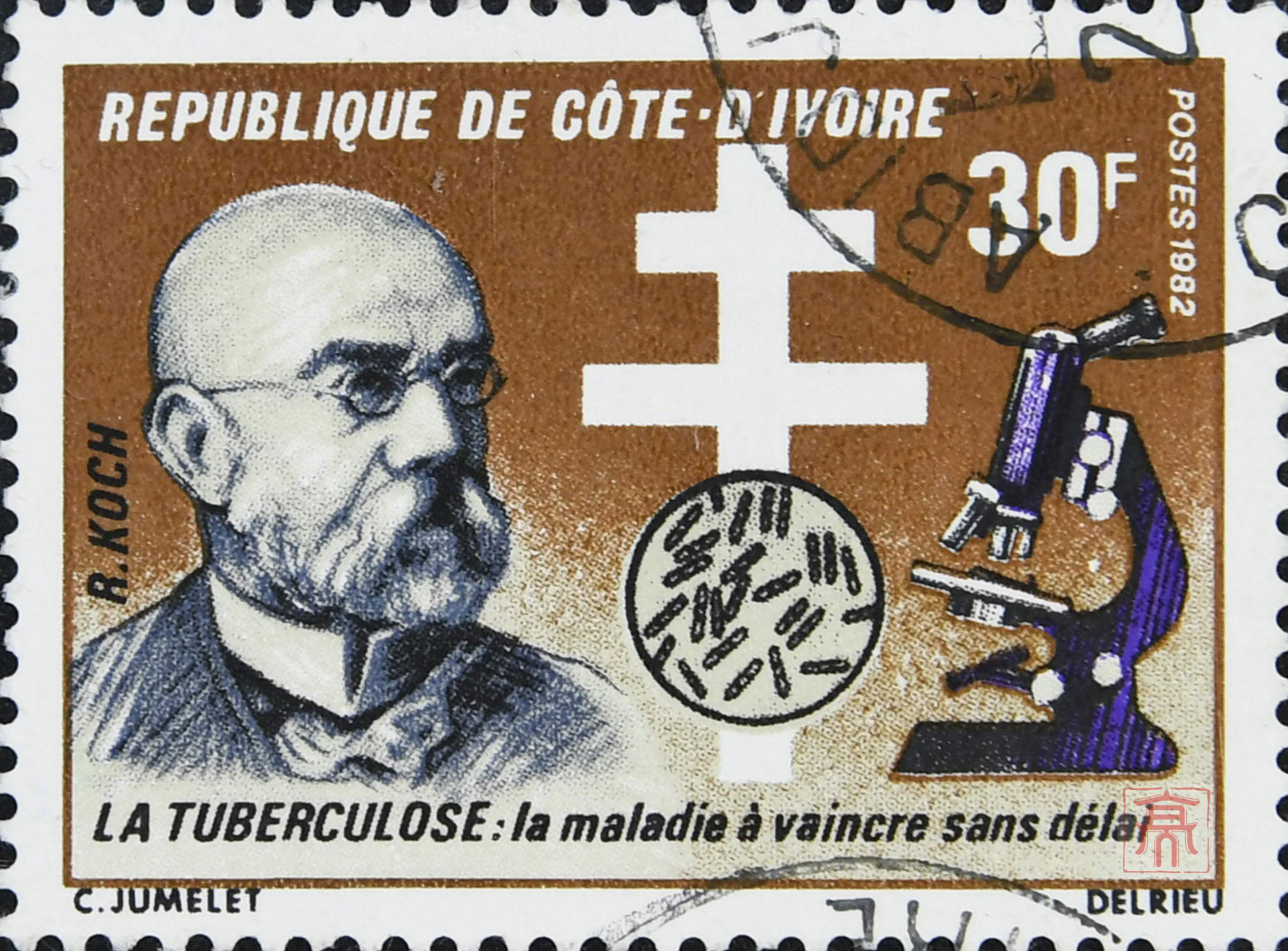 1982年科特迪瓦柯赫发现结核杆菌一百周年纪念票